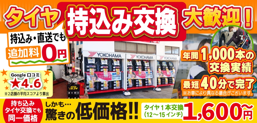お任せ下さいませ! 当店では、大分市・別府市エリアの多くのお客様からご要望を頂いたため、タイヤ持込・交換も受け付けております。