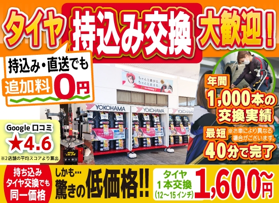 大分・別府の格安タイヤ交換1600円 タイヤ持込も歓迎