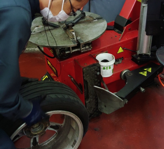 組換えとは、古いタイヤからホイールを外して、そのホイールを新しいタイヤに装着する作業です。